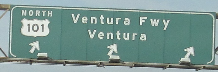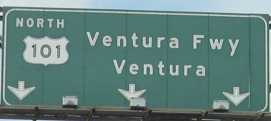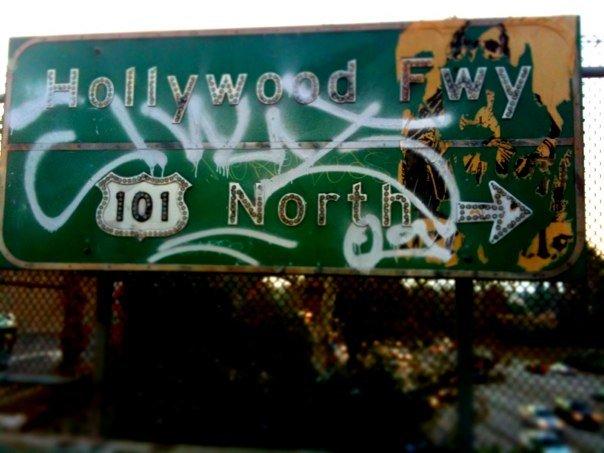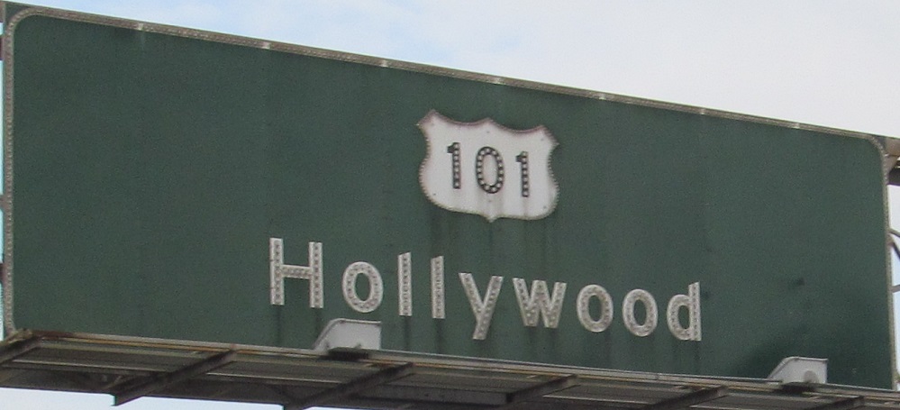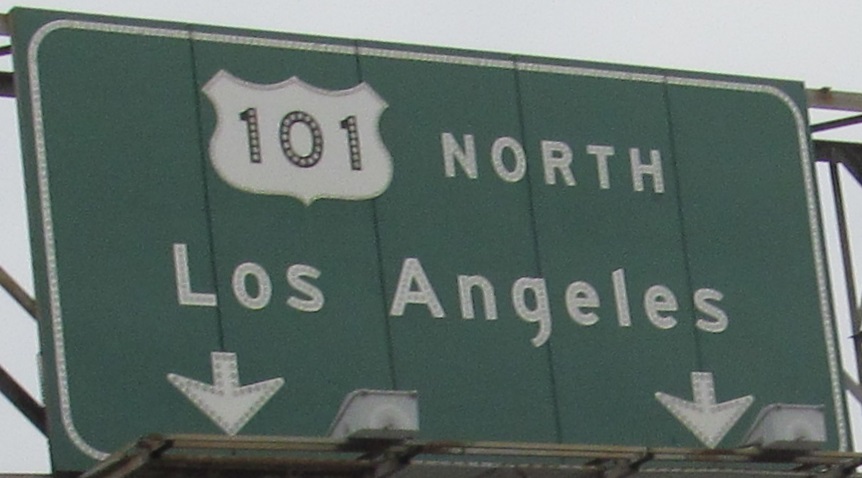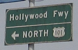 I wonder how old the US 101 shield was under the "North." I know how old the overpass is: 1939, the original east end of Mulholland Dr. over a number of lanes and carriageways that eventually sorted itself into the Hollywood Freeway.