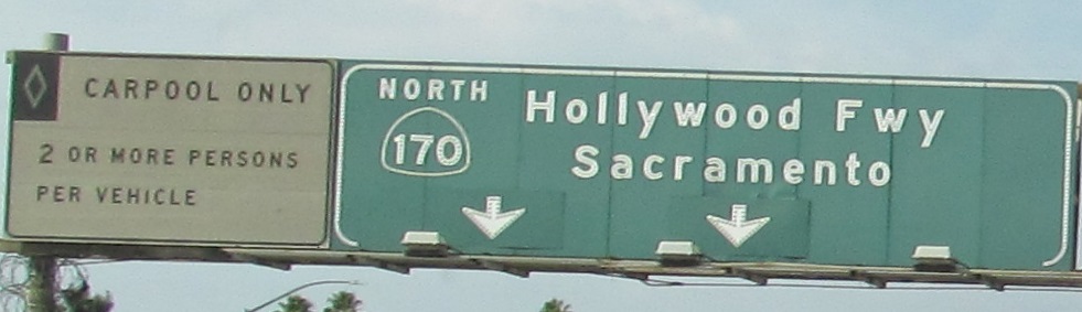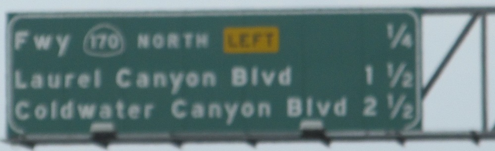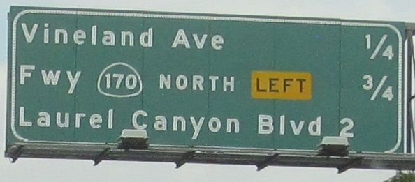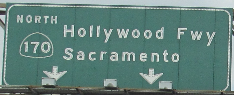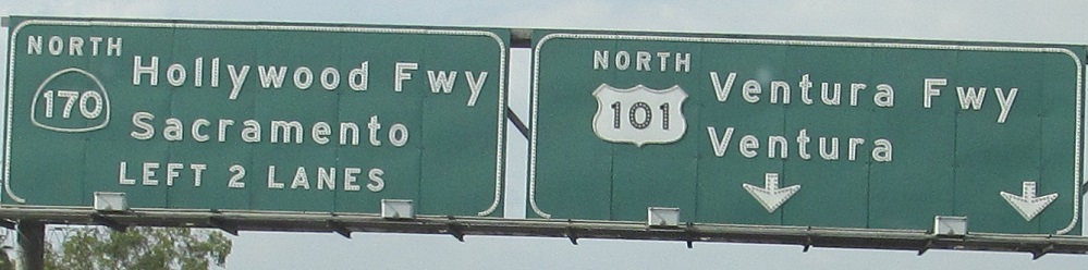 The 3rd and 4th photos are left and right on the same gantry, as are the 5th and 6th photos. As are the 9th and 10th photos and the last two. Because why reduce the size of button copy? US 101 exits the Hollywood for the Ventura, giving birth to CA 170 and absorbing CA 134. (Actually, there's a small disconnected, unsigned piece of CA 170 to the south from Exit 9C. But don't tell anyone.)