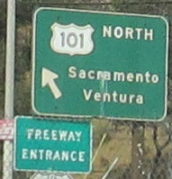 Identical signs on Western Ave. NB, before (right side) and after (left side) crossing US 101.