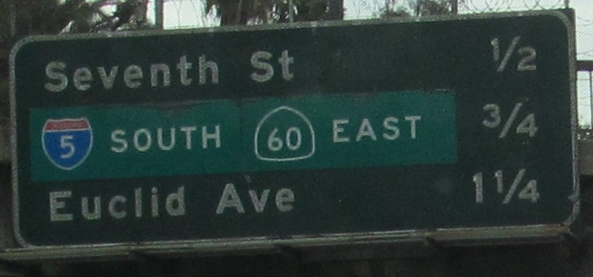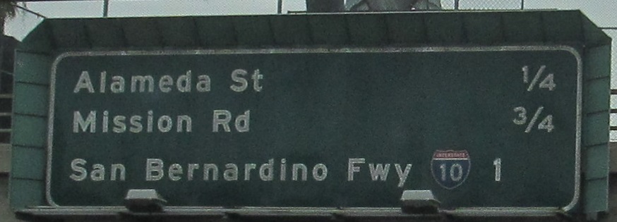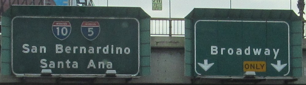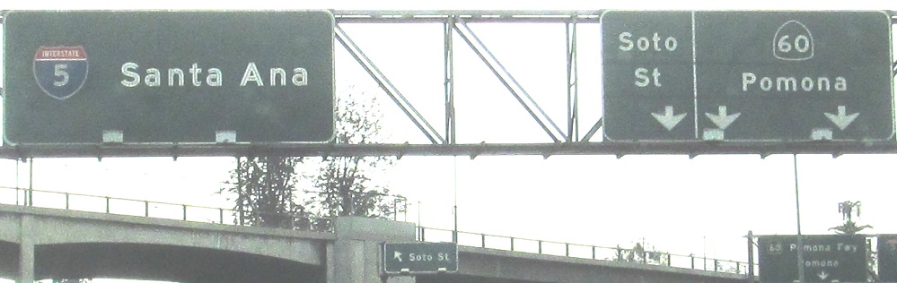 As noted, the first photo comes back on from Mission Rd. (Exit 1E) and US 101 comes to an end after crossing under the now-demolished 6th St. viaduct. The last photo isn't inaccurate - you have to exit right before bearing left to Soto St. - but it sure looks confusing from this angle. On the other hand, the photo showing "South 5/101" is inaccurate, at least as of 1964 which predates this generation of button copy.