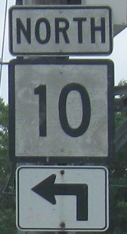 CT 10 NB begins at the first crowded sign, heading toward the second sign and up through the middle of Connecticut. 10 continues through Massachusetts into New Hampshire, bisecting New England.