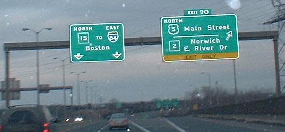 SB at the very beginning of CT 15, along the part of the route used by traffic from I-84 WB to I-91 SB and vice versa. So much traffic wants to use this underpowered freeway that there is a designated bypass route utilizing CT 2 and CT 3 (well, the A route is really for I-91 through traffic, but it serves this purpose too).