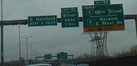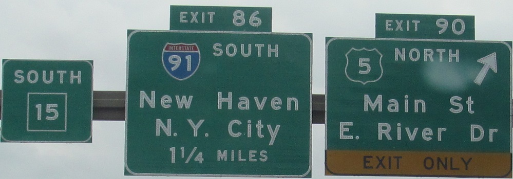 These are on the Wilbur Cross Highway just past I-91. After this, the WCH disappears into the Berlin Turnpike for several miles before it turns back into the Wilbur Cross Parkway.
