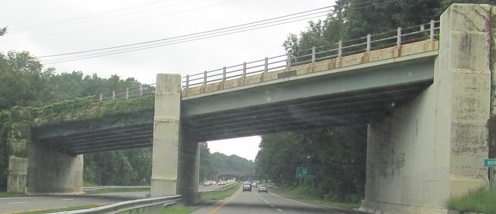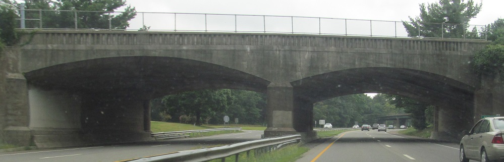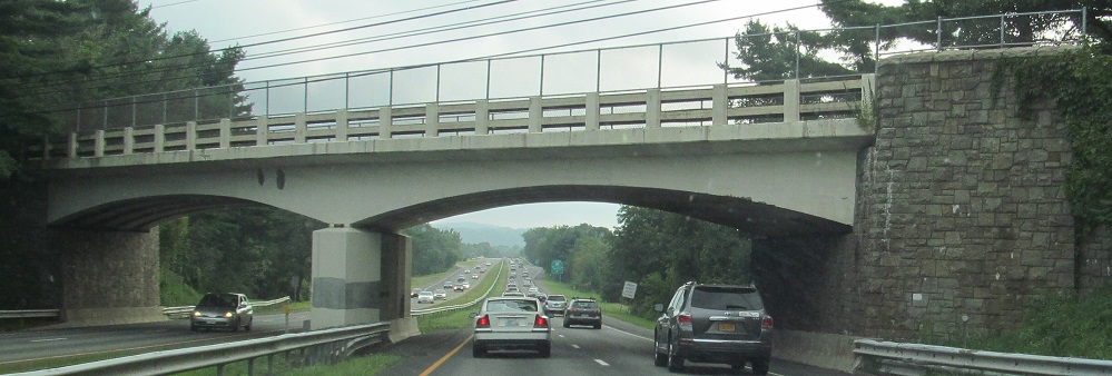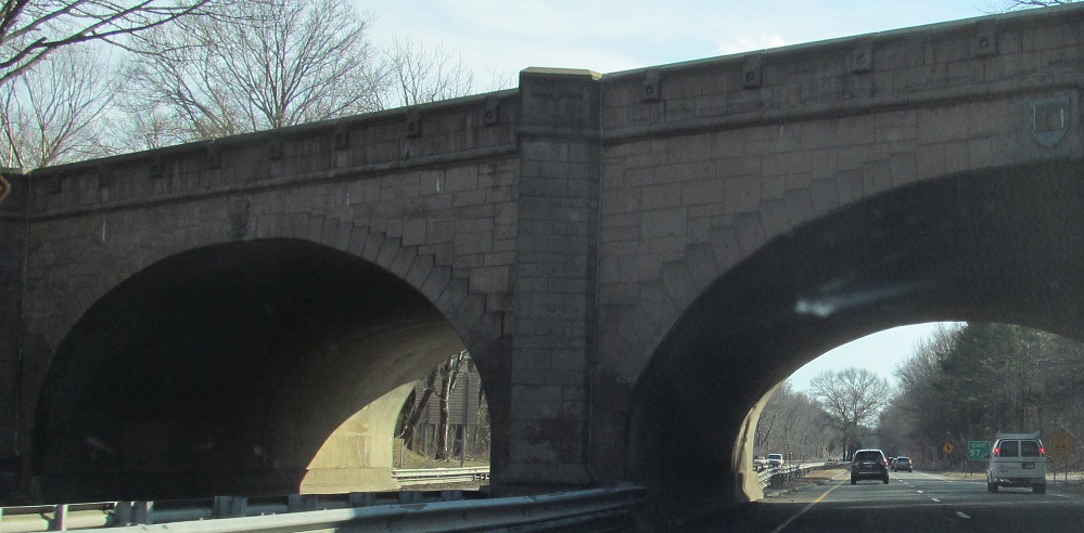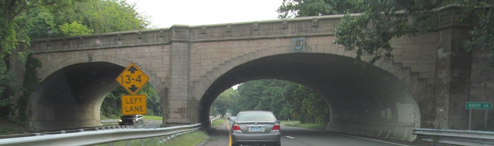 Shortly after beginning, Wilbur Cross Pkwy. dallies with I-91, picking up all of the Boston-NYC passenger car traffic before departing. The first few ornamental overpasses after that are Yale Ave., North State St., and CT 22 (Bishop St.) at Exit 63. There's a different design at every bridge.