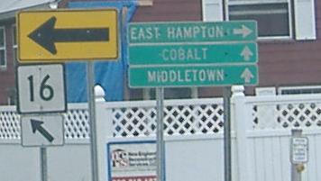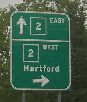 Ugly wide-font Mass-style signs in Colchester. Hint: Connecticut uses a thick black border.
