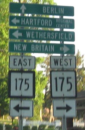 Much newer and uglier shields at the next junction. Hey fire department - can you fire these shields? Or set fire to them? I'd volunteer to do it myself, but I don't live in Newington. CT 173, 174, 175, and 176 all frame the city, one of the rare times CT's numbering system makes sense.