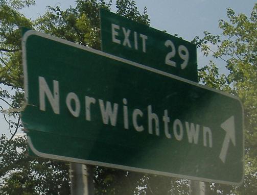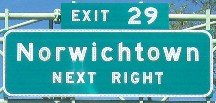 Short multiplex begins in Norwich. Original CT 2, Main St., continues ahead and comes back at CT 32.