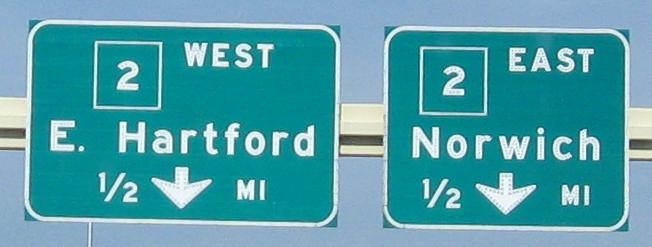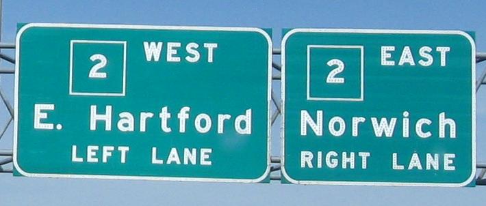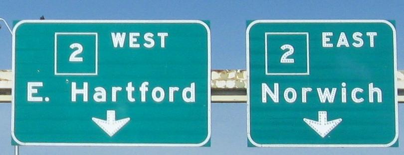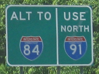 Northbound from the beginning of the freeway to the end, crossing the Putnam Bridge and following the A route until the last possible moment. The A route continues on CT 2 WB and bypasses the most congested parts of I-91, CT 15, and I-84. There are older TO NORTH/SOUTH 2 shield assemblies at the wye in the last photo, but they appear to have recently been replaced, just like the "A" shield in the gore was replaced with an I-91 shield (but not the arrow). The freeway was once planned to continue northeast from here as I-491, tying into the most complicated possible area where I-84 meets I-291 and I-384. Now that would have been a great bypass.