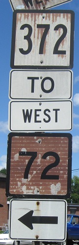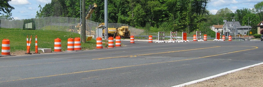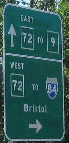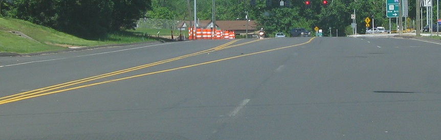 So what better way to start the page than WB where the old 72 meets the current 72. The striping and signage on CT 372 are fully prepared for the completion of the new CT 72 expressway to the west, changing just one arrow and one yellow stripe. The new road needs one more layer of pavement, some stripes, and some signs. CT 372 will not be extended on the former route of 72, which reverts to town maintenance (as it should, given its local function).