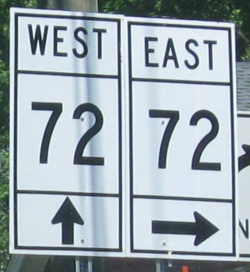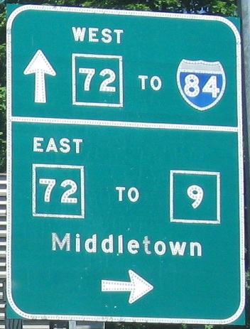 Signs on intersecting roads, from Pine St. WB (secret CT 536), Cooke St. SB, and exiting the Motor Vehicle Department. Click on the first photo for a closeup of the "rusty" CT 72 shield.