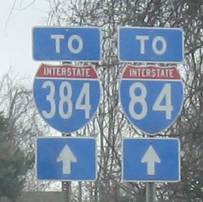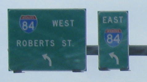 General traffic has a couple of chances to enter the freeway, the first just east of the HOV exit at Roberts St. (Exit 58), then at I-384 Exit 1 just east of I-84 (Exit 59).