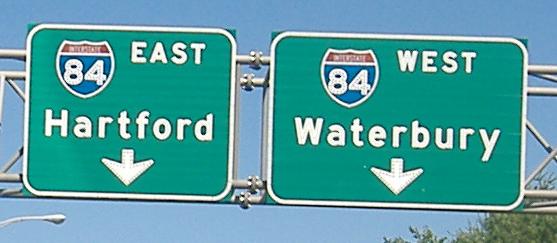 Before these eastbound CT BGS's was an old I-84 shield, but it washed out completely in the sunlight, and I believe it's gone now.