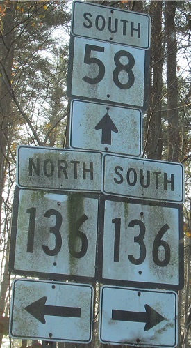 Looking north from CT 107, looking south at Giles Hill Rd. The first shield is correct, the second is not.