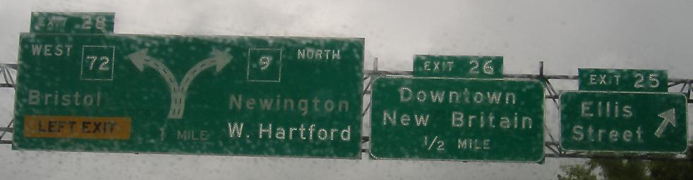 Exit 22 is incomplete, due to CT 9 following so closely to the south side of CT 372 in the vicinity of the Berlin Turnpike (US 5/CT 15), so NB-NB traffic must use CT 372. Most NB-NB traffic would be using I-91 toward Hartford at Exit 20, so this arrangement seems to work well.