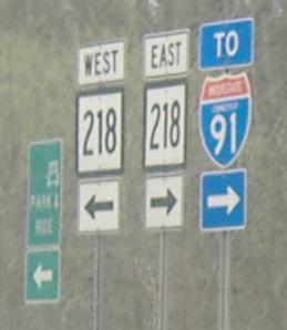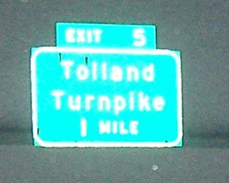 We pause in this westbound progression to bring you something special (on the Exit 3 ramp): a 3-digit state highway shield. There's one on CT 218 itself just west of here (click on the link at the bottom of this page), but almost no other one in Connecticut. I of course except Interstate shields from this rule.