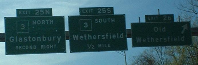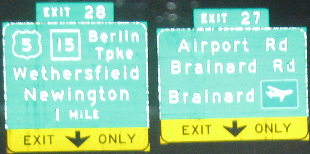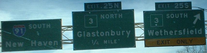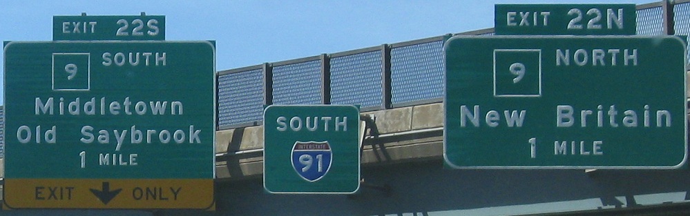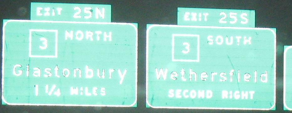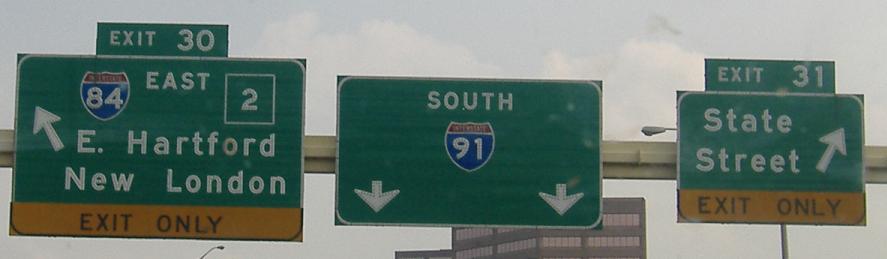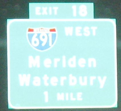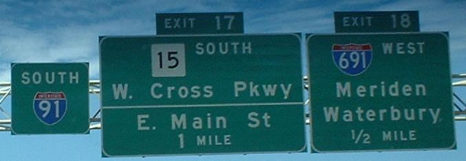 Although it's not button copy, the beginning of I-691, which serves as a southern bypass of I-84 west of Hartford (84-691-91-15-84 is about the same mileage as just staying on 84), reflects older standards with centered exit tabs and no larger first directional letter. You can also see the "real" CT 15 exit, which puts motorists onto the freeway instead of Berlin Turnpike portion of 15.