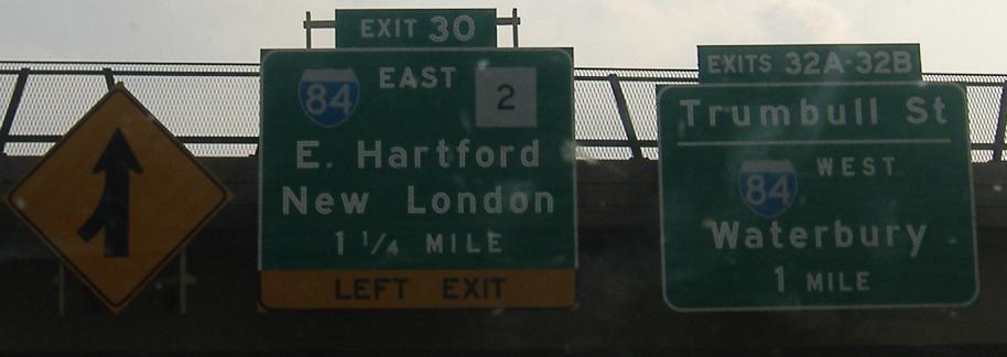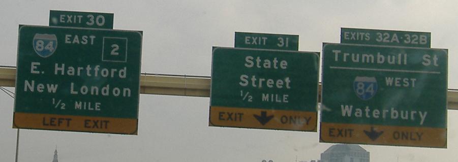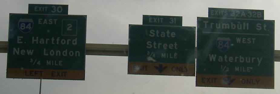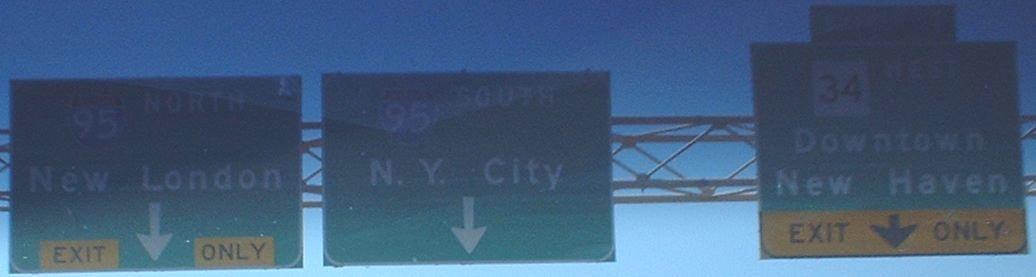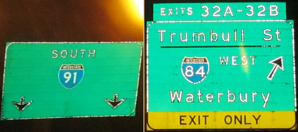 One of the last remnants of older Connecticut route signage is surprisingly right at the bottom of the Exit 7 ramp near Ferry St.. Click the second photo (which is the lower half of the first one) for exhilarating closeup.