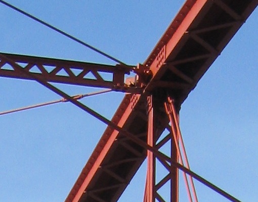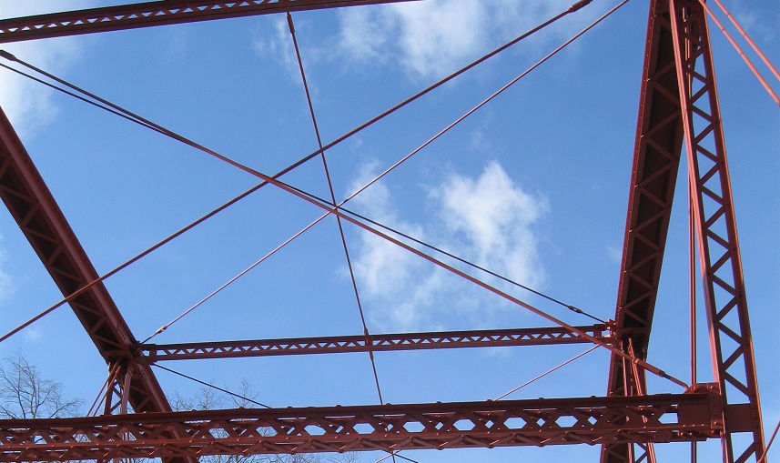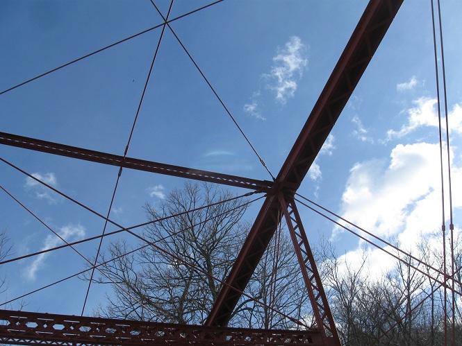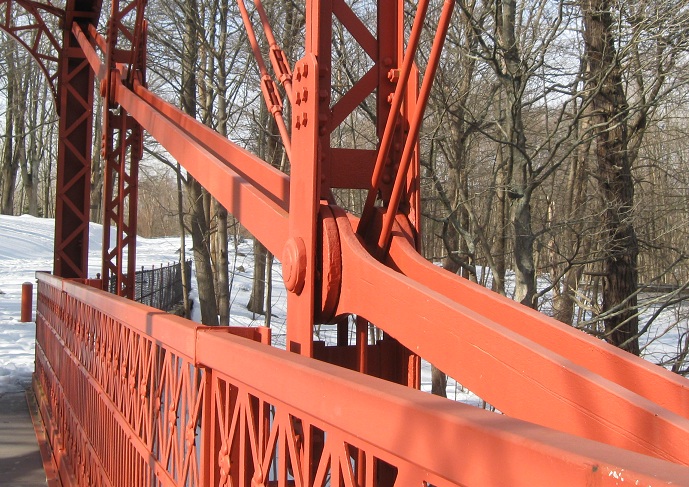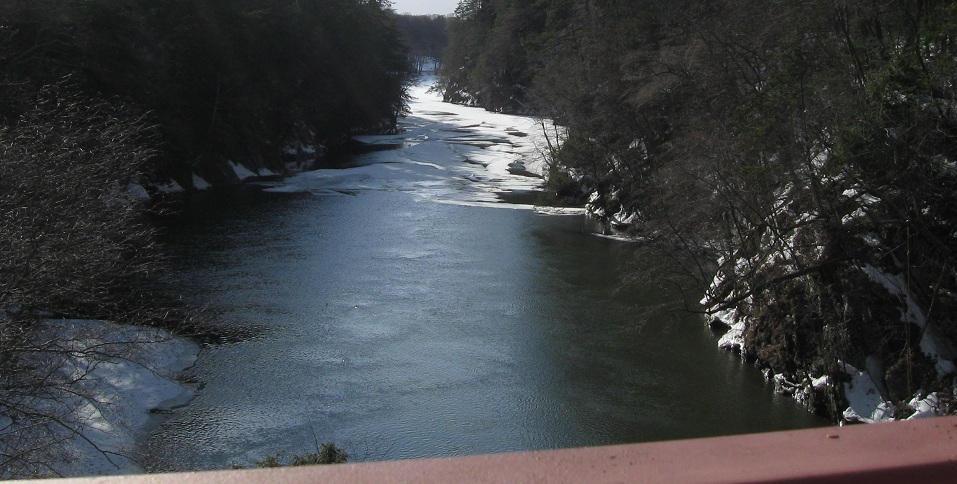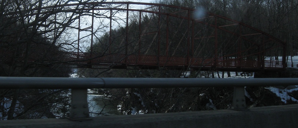 Looking south and straight down at the Housatonic River. I doubt the current pedestrian surface is what cars had to drive over, but one never knows. More likely, the deck was wooden, still with the ability to see water flowing beneath.