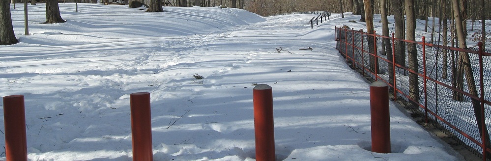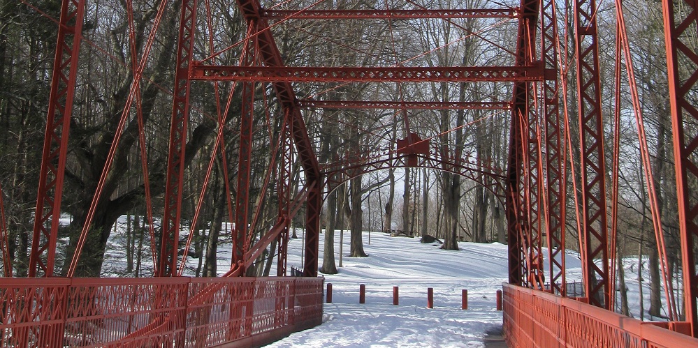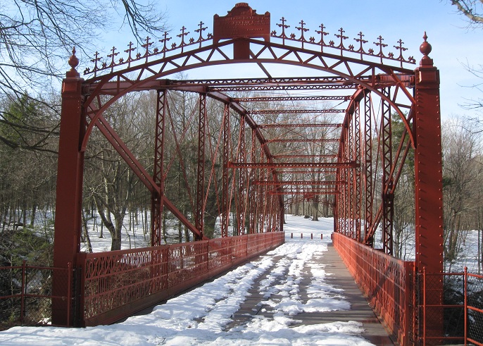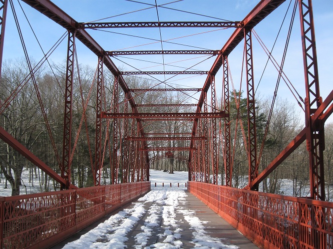 I parked on the east side of the bridge and walked back west during a winter morning. Old Still River Rd. continues ahead to a trail parking lot.