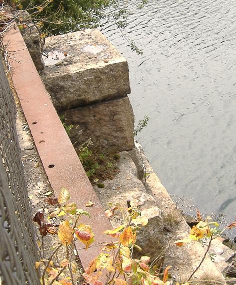 The southern and northern abutments, with metal bridge plates still sticking to the northern one.