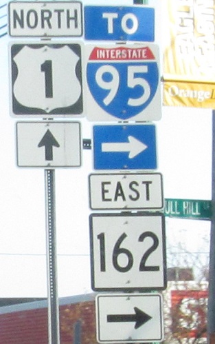 The only reason this correctly reads US 1 NB is because some genius decided to just switch the NORTH and EAST. Of course, since CT 53 doesn't go east, the switch still doesn't work. Or else it was wrong from the get-go.