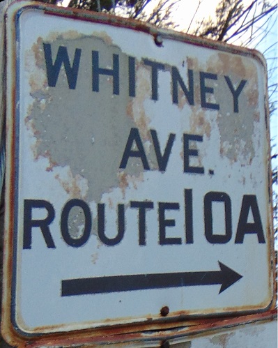 This fine specimen was near the south end of Hartford Tpk. at Davis St. in Hamden until December 2014, removed just days before my visit, so I am relying on Doug Kerr for this photo (separated into top and bottom). Both Routes 5A and 10A disappeared in the 1960s.