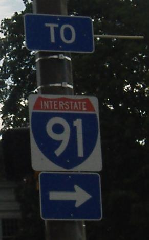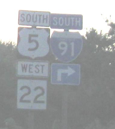 Southbound into the reverse-colored East Windsor Hill (with a lower-case Connecticut, just in case you thought the signmakers could do anything right).