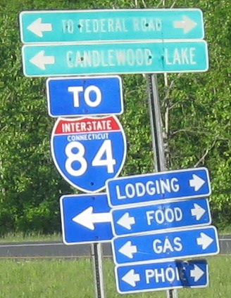 Southbound signs on the freeway. First of all, why are only the 1 and 3 button copy in that last photo? Second of all, why is the I-84 interchange numbered Exit 13, when Federal Road and US 202 are numbered Exits 11 and 12? I'd have to think I-84 was meant to once be Exit 10, but why number it at all if the rest of the freeway isn't complete to Norwalk?