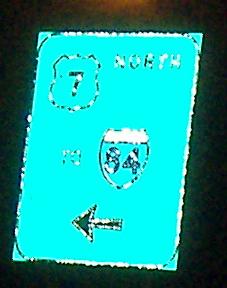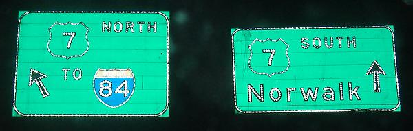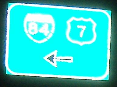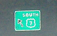 And southbound signs, which are sparser because there's no freeway looming at the end. Click on the second photo to see a daylight version that shows the gantry pole in US 7's rust color.
