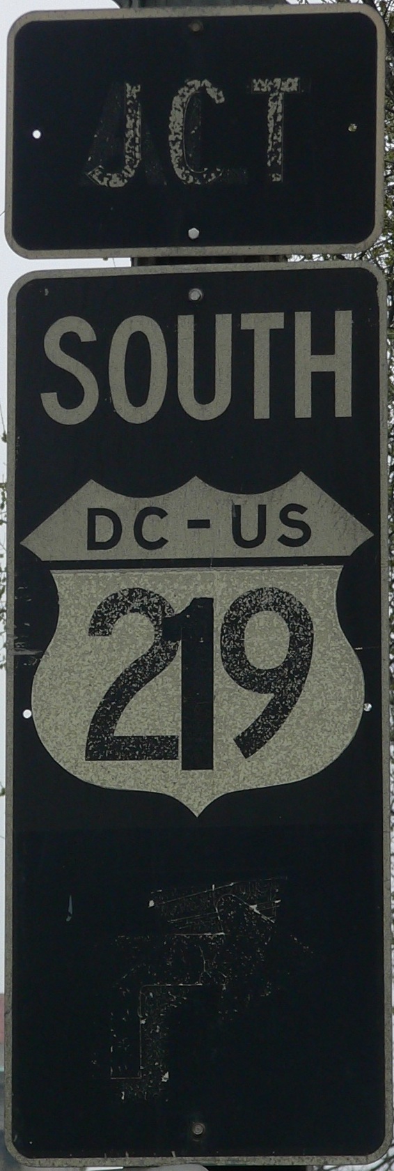 Mike Byrnes found me some more old signs that have me planning a return trip. The first one, which I just flat-out missed, faces 15th St. NW northbound. Mike assures me the second one is on US 50 EB, but since I didn't see it last time I traveled the road, I don't know where or how he found it. Click on it for a closeup showing the transformation of ALT into JCT (or vice versa, it's really hard to tell), 29 into 1, and a bent arrow into a hard right and then into nothing at all.