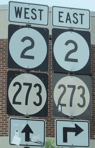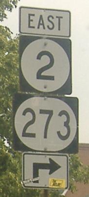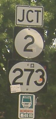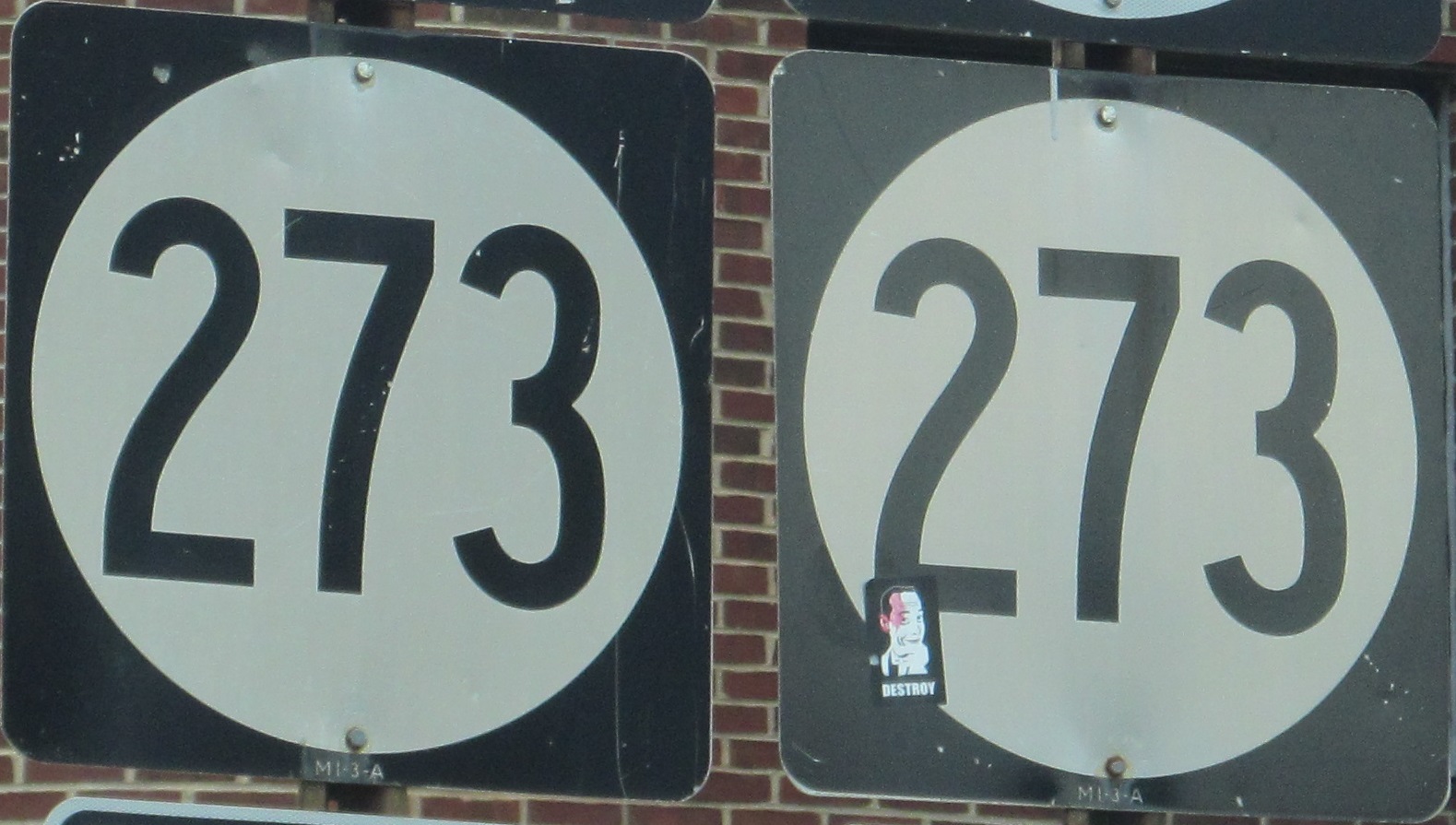 Old signs on Academy St. NB at Delaware Ave. (DE 273 EB) and Main St. (DE 273 WB) in Newark. Click on the shields for a closeup of the 273s, which somehow predate the 2s although the latter are no longer relevant.