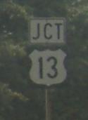 Eastbound; the holes are for the wind (and the caption is recycled). US 40 should have been represented in the junction signage, and should be an old shield to match the 13 because I say so.