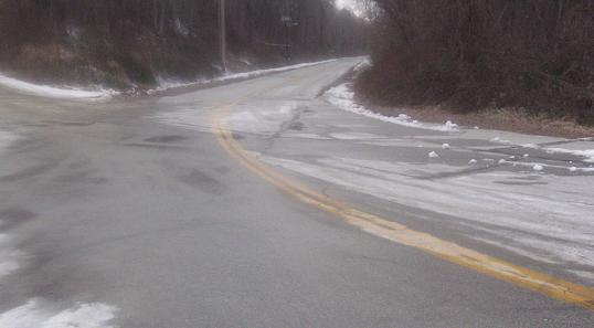 Looking left and right from the old wye where DE 896 (left) and DE 71 (right) split on the north side of the bridge. Because this intersection was a wye from the old bridge, with a northern leg that has now been modified to carry mainline 71, the transition between legs is rather awkward - look how far the double-yellow line swings away from the edge of pavement.