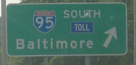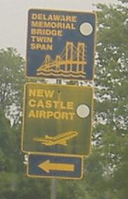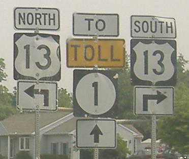 The southern end of DE 896 at US 13, with oversize TOLL banners for DE 1, one old US 13 shield (pick which one!), and all the signs in a somewhat used condition. The faded blue squares, standard DRBA signage (look up the acronym if you must), were not faded in HNTB's photo, which I had up here until late 2007.