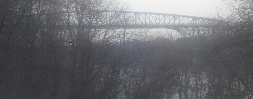After picking my way down to the canal, I can get much clearer photos of Summit Bridge, and also the NS railroad bridge to the east.