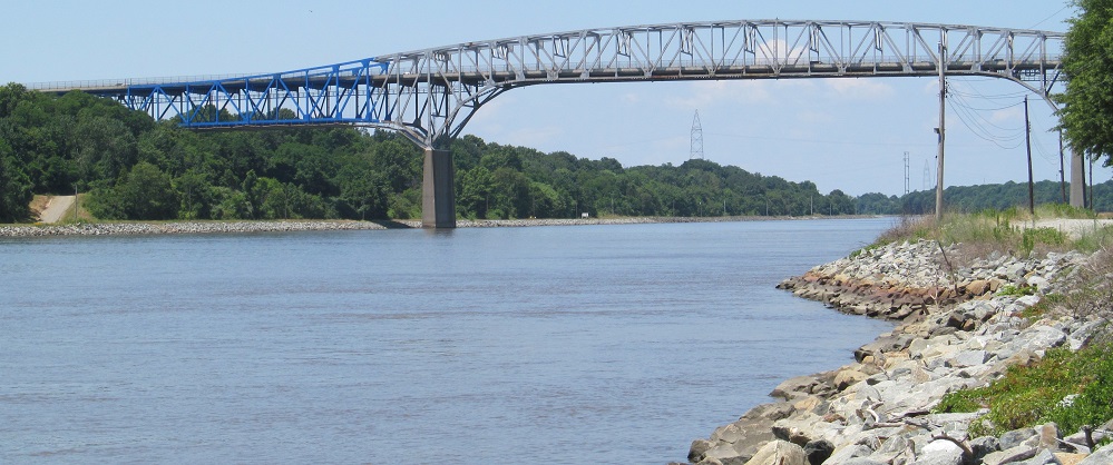 Old Summit Bridge Rd. on the south side of the C-D Canal, looking west at the current Summit Bridge carrying DE 896 along with US 301 and DE 71. That's on my US 301 page, but because the old road was never US 301, it goes on this page. It also doesn't sign the Bethel Church Rd. detour for NORTH 301, just 896 - also ignoring NORTH 71 and SOUTH 15. Bethel Church Rd. is DE 15 to the south of current DE 896 and that route once began from this very road.