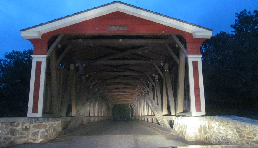 A small development northwest of Newark, tucked inside the MD and PA borders, is named Covered Bridge Farms, and is accessed via Covered Bridge Lane. Guess what you will find there? Photos are EB and WB across East Branch Christina River at the Wedgewood Rd. entrance.