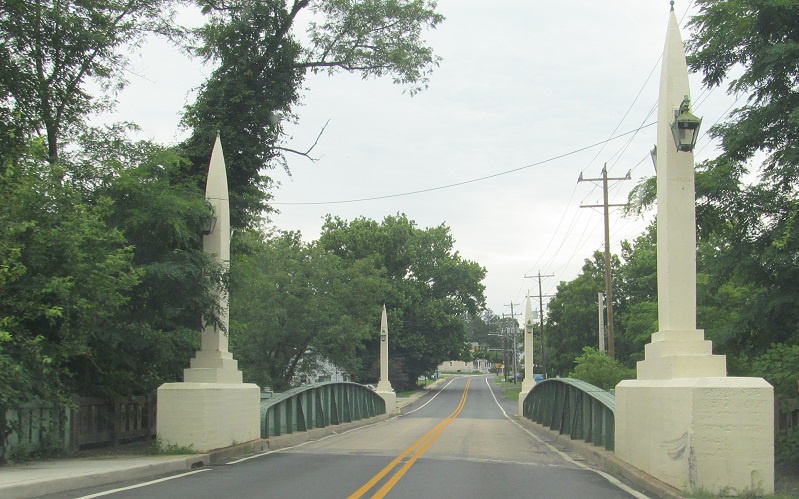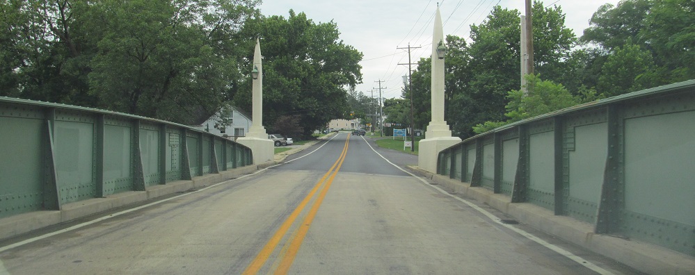 WB across Red Clay Creek on the 1931 Marshallton Bridge into Marshallton.