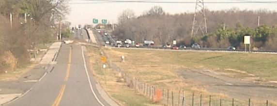 Northbound on the active roadway, the former southbound lanes of US 13. I will cross over using the dirt path in this photo to access the abandoned lanes for the next photos: