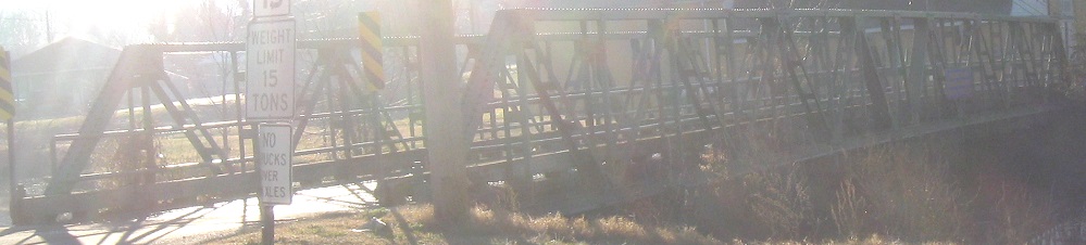 Looking west at the central swing mechanism, which apparently still works but is almost never needed. That blue sign tells boat traffic that the bridge can be opened in an emergency, as long as you give 48 hours notice. Wait, what's the definition of "emergency" again?