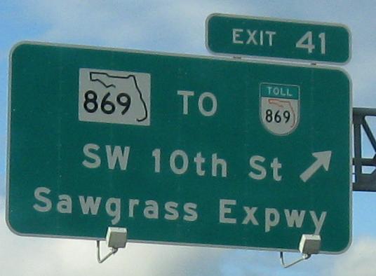NB past a Florida peculiary into the only significant stretch of button copy left in the state. That's why I cut off Exit 48A so rudely - it's all about the button copy, baby! Give FDOT time, and they could turn a section of FL 869 back to the county (it happens throughout the state with many reversals), and then you'd have three shields for the same road. That doesn't mean they all need to be on the same sign.