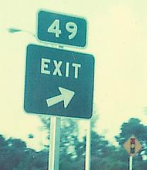 Northbound in 1977, again courtesy Michael Summa; with the renumbering from sequential to mileage-based exits, these are now Exits 66 and 68.