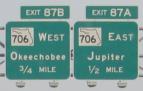 2) Improper sign dimensions. There's not enough green space on the outside of the sign - it should be equal to the upper case letter height. This particularly manifests itself on the left and right of the exit tabs and the FL 706 lines.