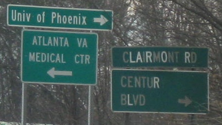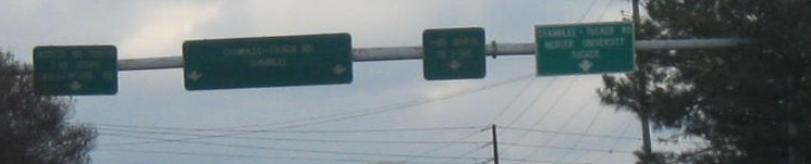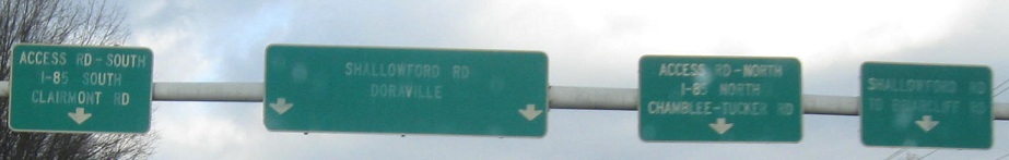 Georgia knows that button copy is best. Or at least, it knew, once upon a time. Pleasantdale Rd. NB at I-85 Exit 95, and then elsewhere in Doraville, courtesy Doug Kerr.