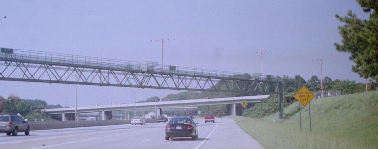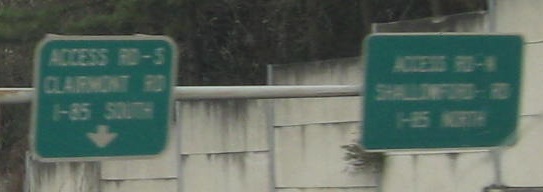 The NB frontage road in the same area, up to Exit 94 as seen from the highway. It had just snowed in Atlanta, about as much as is ever possible, and was still coming down in flurries, which may explain why these photos are a little dark and blurry. Flurry=blurry. I need more sleep before writing these captions.