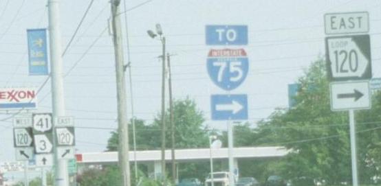 Two northbound, and the third southbound, on US 41/GA 3 (the semi-transparent ghost route for 41), courtesy J.P. Nasiatka. State name shield sandwiched by unusual overheads.