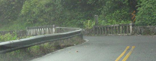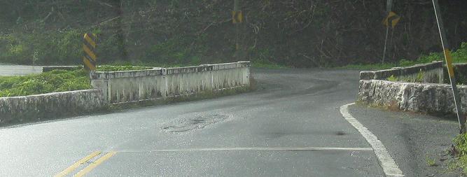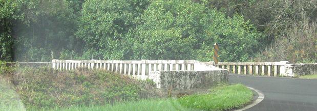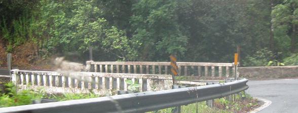 Not all of the one-lane stretches of the road are over bridges, but the first bridge here is at the end of one that heads around a curve - a curve that also has a vertical crest, meaning you can't see possible opposing traffic either as you come around the bend or even after you've come around.