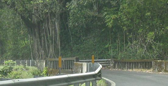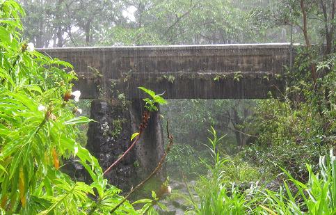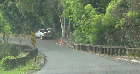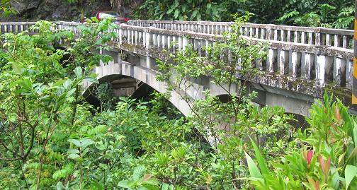 Only two bridges here - the last three photos are views of the same concrete arch. The water thievery is being carried out by the East Maui Irrigation Company, sending creek water to farmers on the slopes to promote agriculture and the state's economy. Of course, the other, non-farming locals hate the move and want the natural beauty of all the tumbling streams restored. Luckily I only care about the bridges and don't have to take sides.