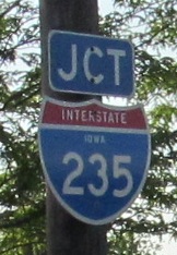 IA 163 crosses I-235 with a partial interchange, but then two minutes later (last two photos) comes to US 69, which has a full interchange just to the south. So, that said, the "WEST" banner is unnecessary. This is the most use of utility poles instead of sign posts I've seen in modern times.