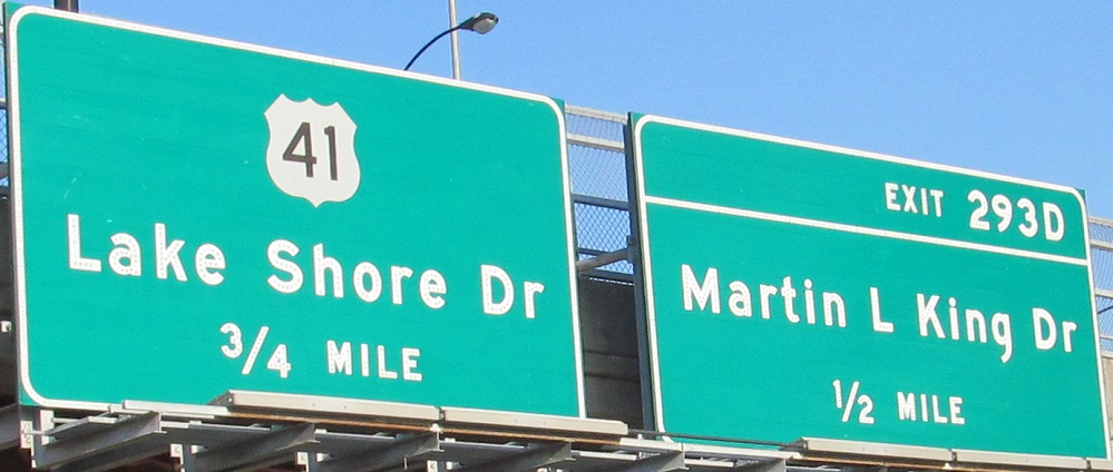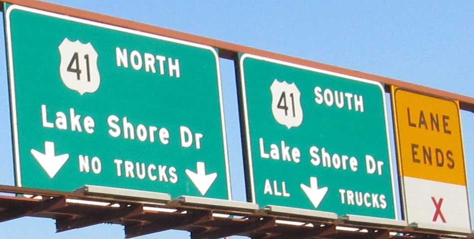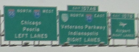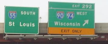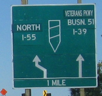 Older, center-tabbed signs announce I-55's NB arrival in Bloomington. It's nice to see a US highway mentioned as part of a freeway, but which directions does it go, and which one is which way?